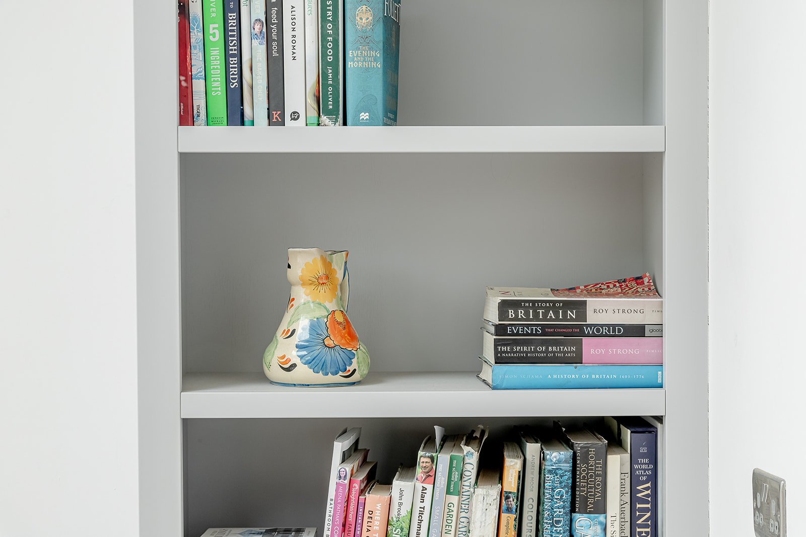 When a little underutilised corner just needs to be given a purpose, a fitted open shelving unit is never a bad idea. Adaptable good looking shelving for books or artefact display.