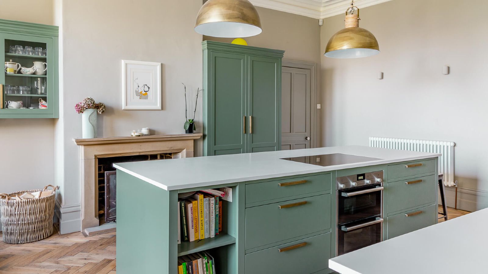 This majestic Victorian villa required a full kitchen renovation. We needed to do this beautiful historic home justice & careful consideration was put into the kitchen design. The result is a spacious, elegant kitchen living room, perfect for family life & a super entertaining space. Modern shaker style cabinetry with a mixture of glazed & solid doors & brass accents, the heart of the home.